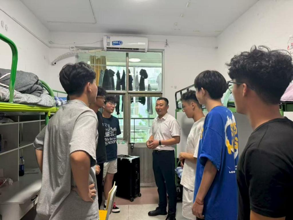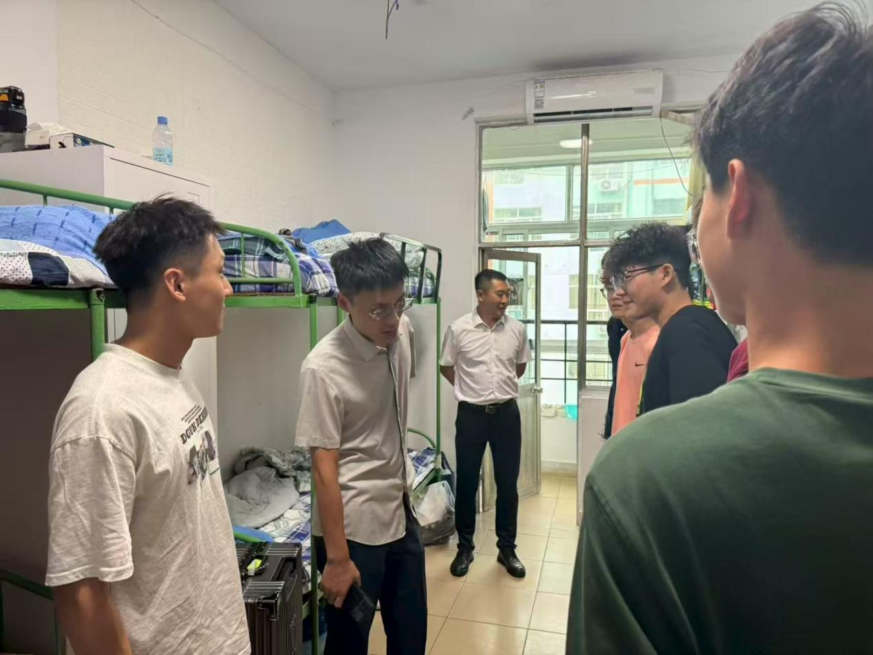 团委书记刘京,辅导员栾永鑫、周晗等一行深入2025级新生宿舍,为新生送去学院的关怀与温暖。