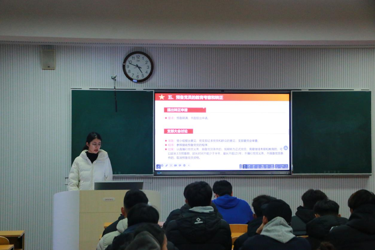 2022级辅导员王冰担任主讲人,以“党旗飘扬的方向——党建工作实务”为主题,讲授团课,聚焦党员发展流程中的“确定发展对象和考察”等核心实务要点。动漫av