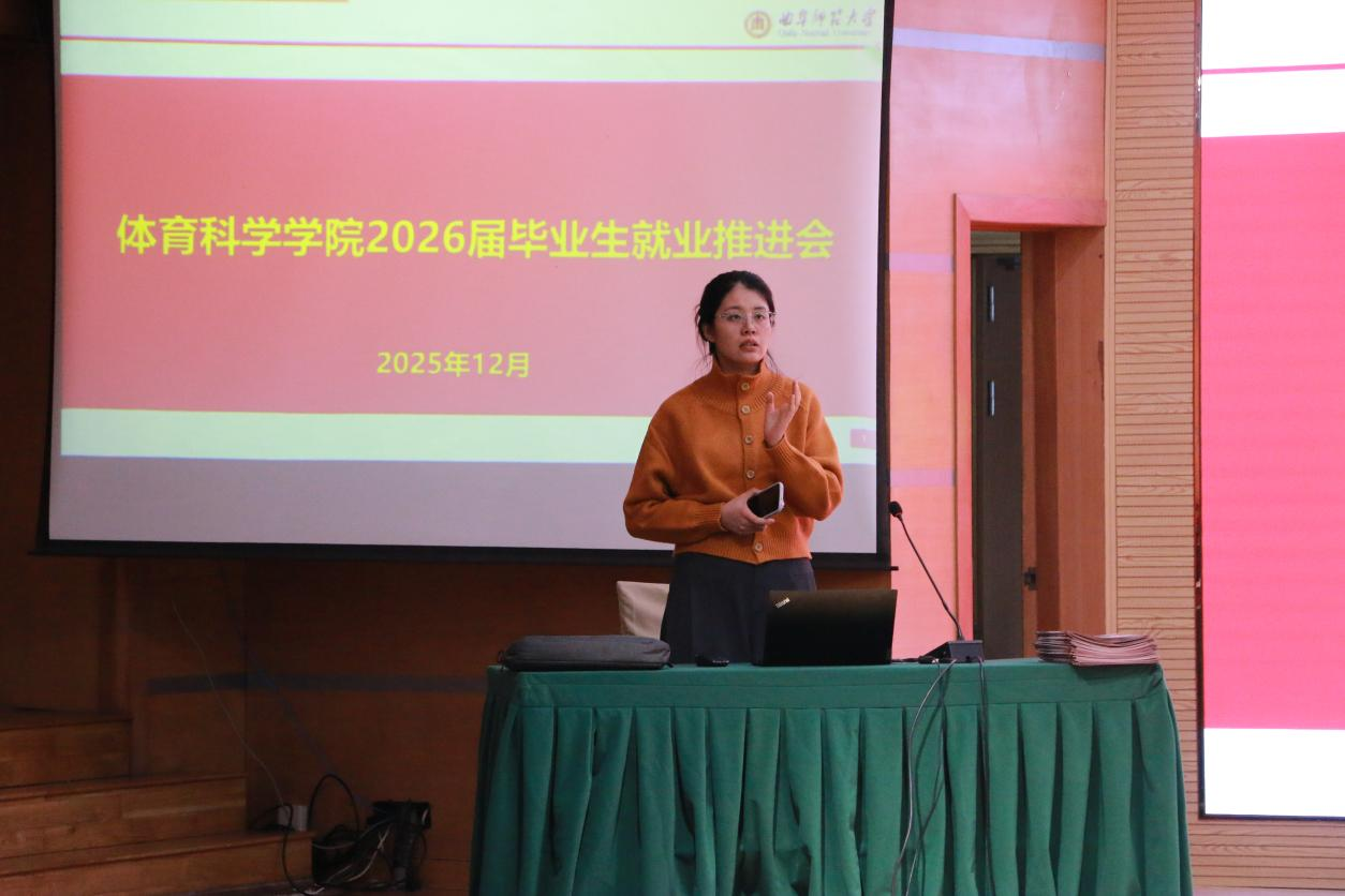 会上,王冰结合体育学科就业特点与学院2026届毕业生的实际情况,从就业现状分析、求职方向梳理、就业服务计划三个方面展开专题分享。她首先通报了当前毕业生的就业意向摸排情况,分类梳理了考研升学、中小学体育教师招聘、体育企业运营、全民健身指导等主流就业方向的市场需求与竞争态势,重点指出部分学生存在职业定位模糊、求职准备不足、基层就业意愿不强等问题。随后,结合自身多年就业指导经验,围绕简历优化、面试技巧、政策利用等核心内容给出具体建议,表示要突出体育专业技能、教学实践经历等差异化优势,同时详细解读了基层就业、创新创业相关的扶持政策,鼓励毕业生把握机遇、多元择业。