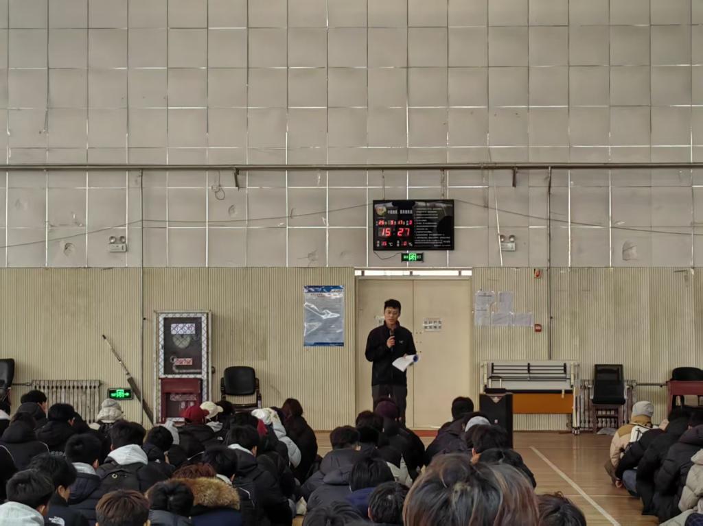 随后,聚焦元旦假期安全,从多维度为同学们敲响安全警钟。针对交通安全,他提醒同学们合理规划出行路线,不乘坐无牌无证车辆,遵守交通规则;针对人身与财产安全,强调假期留校同学要做好宿舍防火防盗工作,离校前关闭水电、锁好门窗,外出游玩时注意防范诈骗,不轻易透露个人信息;