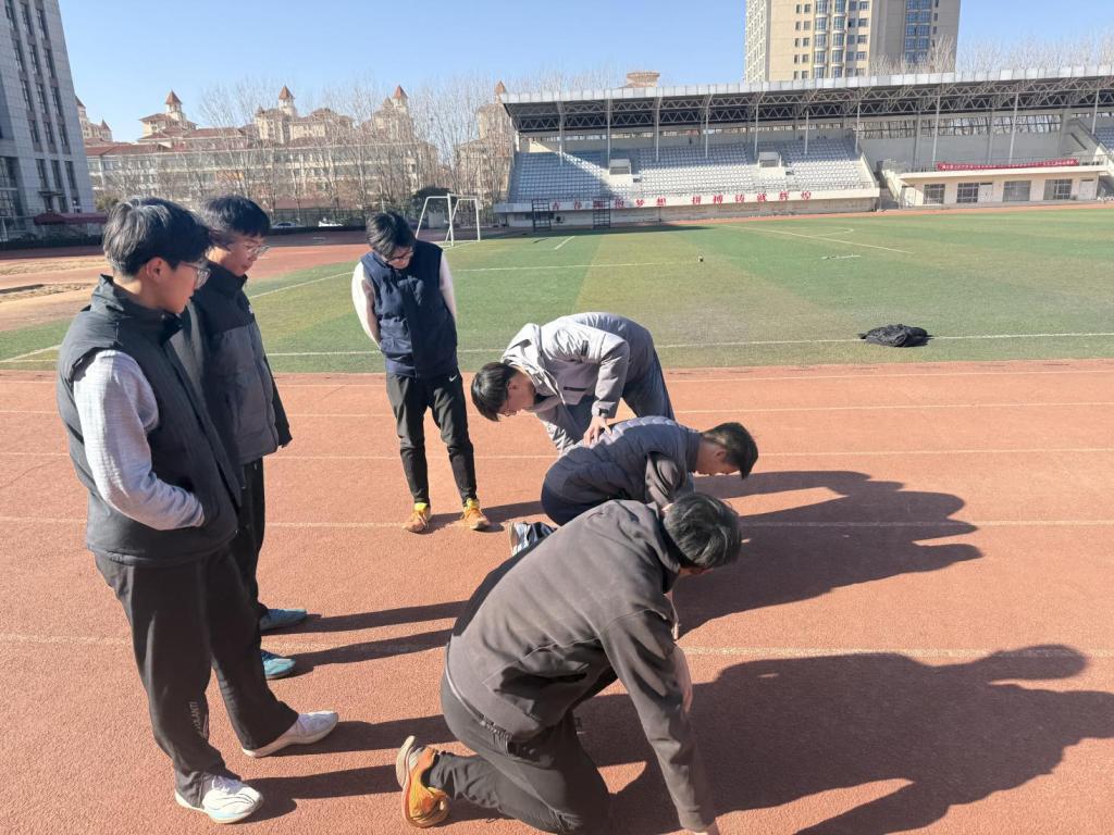 在田径起跑指导环节,学子们聚焦短跑、跳远等项目的起跑技术,从起跑器的调试安装、身体前倾的角度控制,到蹬摆协调的发力逻辑、起跑后的加速衔接,进行系统化拆解教学。他们亲自示范蹲踞式起跑的完整流程,细致讲解每个环节的核心要点,针对部分同学起跑时重心不稳、蹬摆不协调等问题,逐一进行针对性指导,通过反复模拟练习、动作分解矫正,帮助大家建立规范的起跑动作记忆,提升起跑反应速度与爆发力。