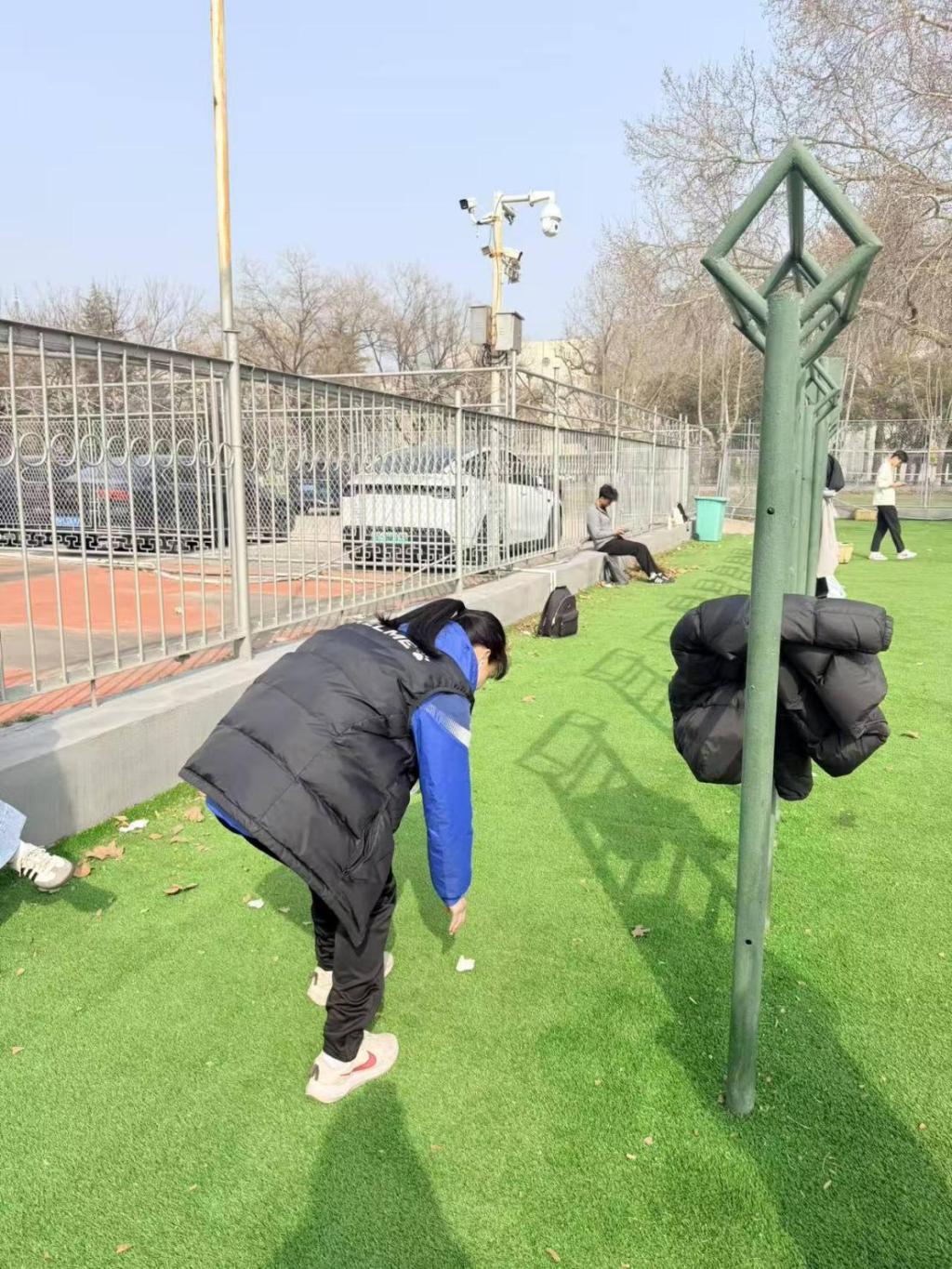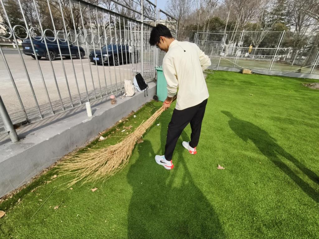 在实践环节,体育科学学院组织志愿者服务队开展校园环境整治行动。志愿者们身着统一服装,手持清洁工具进行全面清扫,捡拾垃圾、规整杂物,同时宣传环保知识与文明理念,引导大家养成爱护环境、随手清洁的良好习惯。此外,志愿者们还对校园内车辆停放秩序进行规范引导,提醒同学们有序停放,保障校园道路畅通,以实际行动美化校园环境。