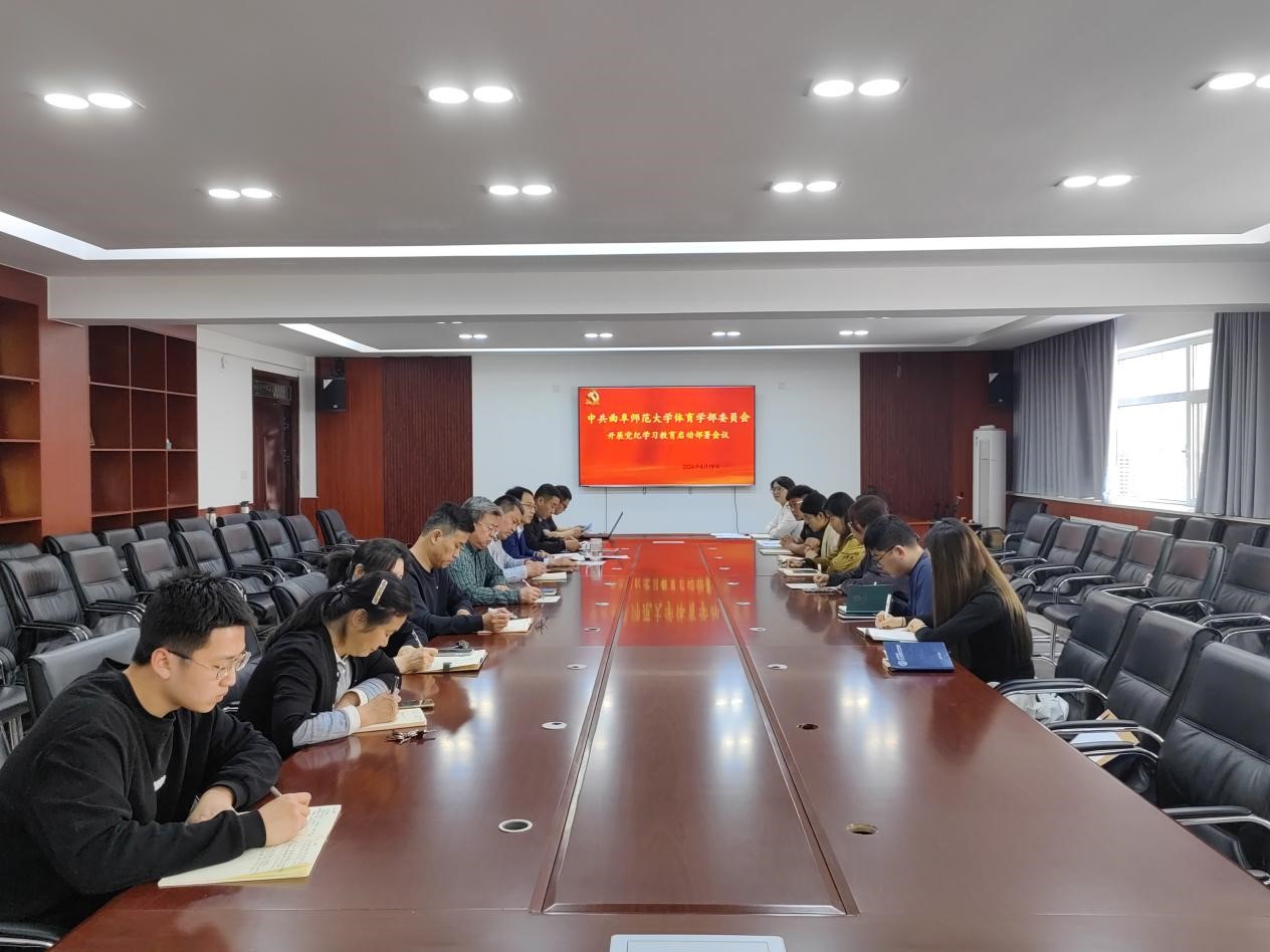 第一议题传达学习了中央关于开展党纪学习教育有关会议精神,学习贯彻习近平总书记关于党纪学习教育的重要讲话和重要指示精神,部署和深入开展体育学部党纪学习教育。