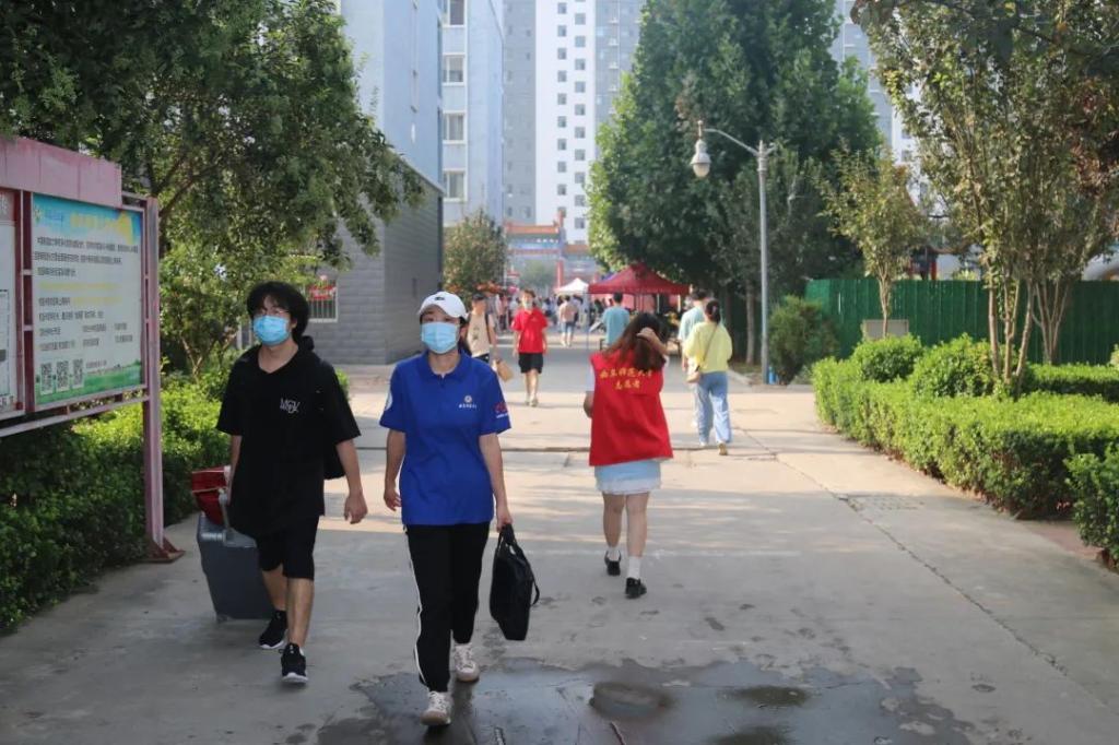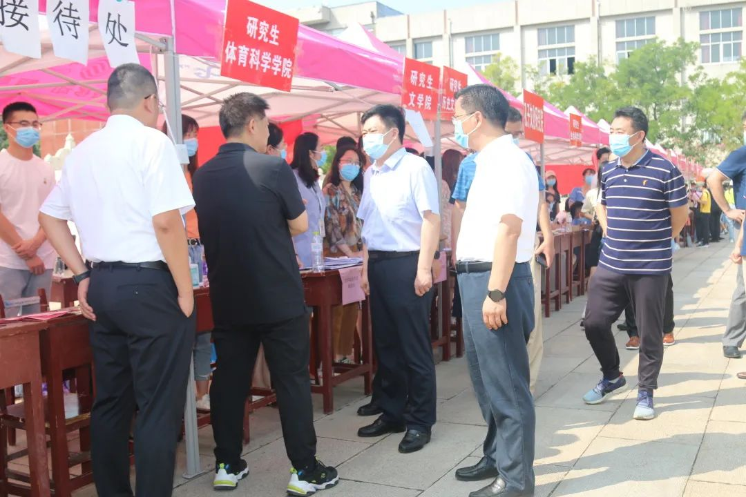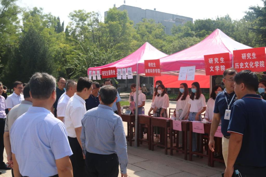 党委书记戚万学、校长张洪海一行来到报道现场看望新生,并亲切慰问了迎新一线的工作人员。