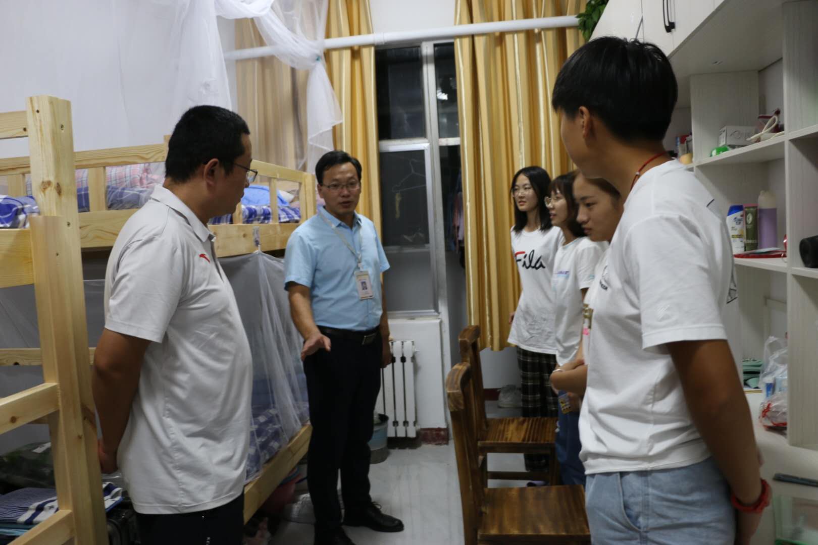 党委书记刘敏,党委副书记展利民,副院长李思民、副院长韩春利、院长助理伊超、学院全体辅导员及部分学生干部走进2020级新生宿舍与同学们亲切交流,向同学们传达学院的热情问候和殷切期望。