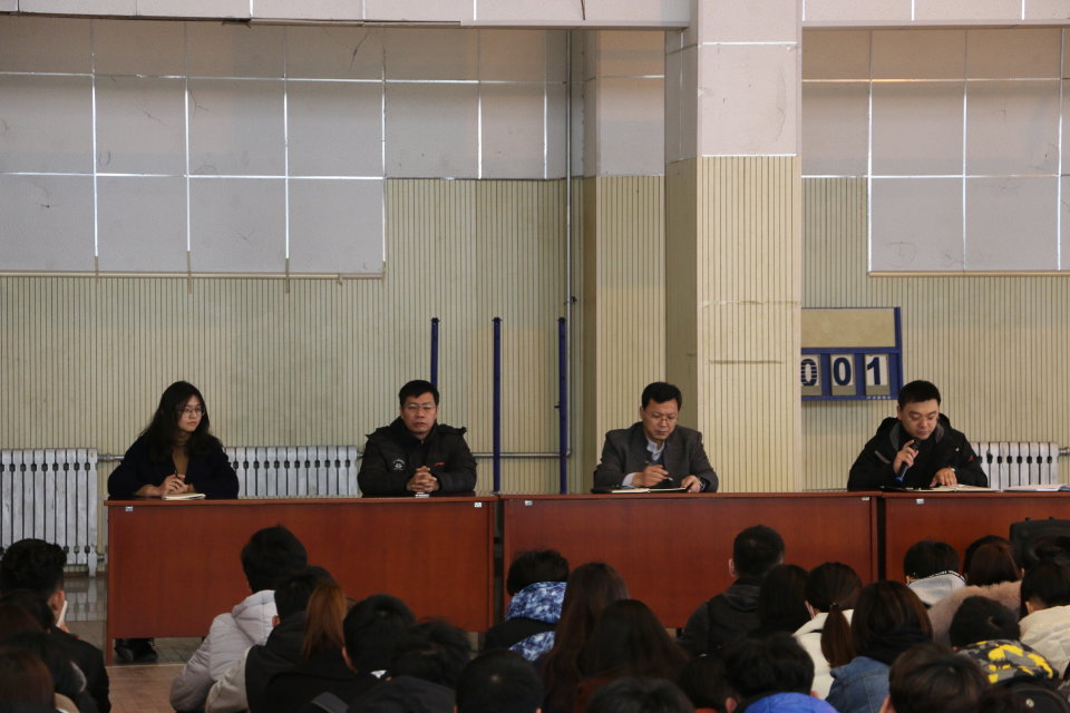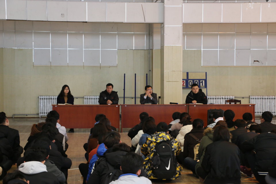 新篮球馆召开了学生干部安全教育大会。此次大会由院党委副书记展利民主讲,团委副书记梁贺涵主持,学院辅导员、团委学生会全体成员及各班班长和团支书参加了此次大会。